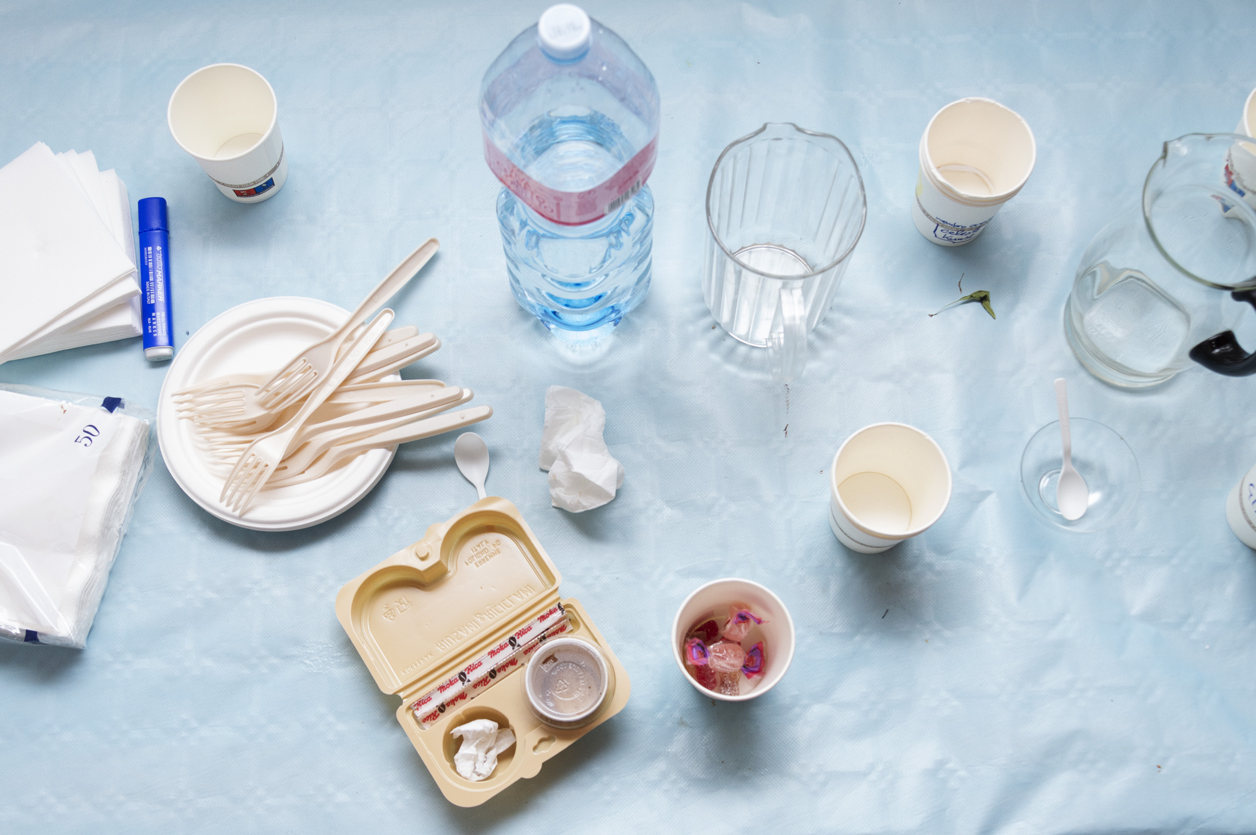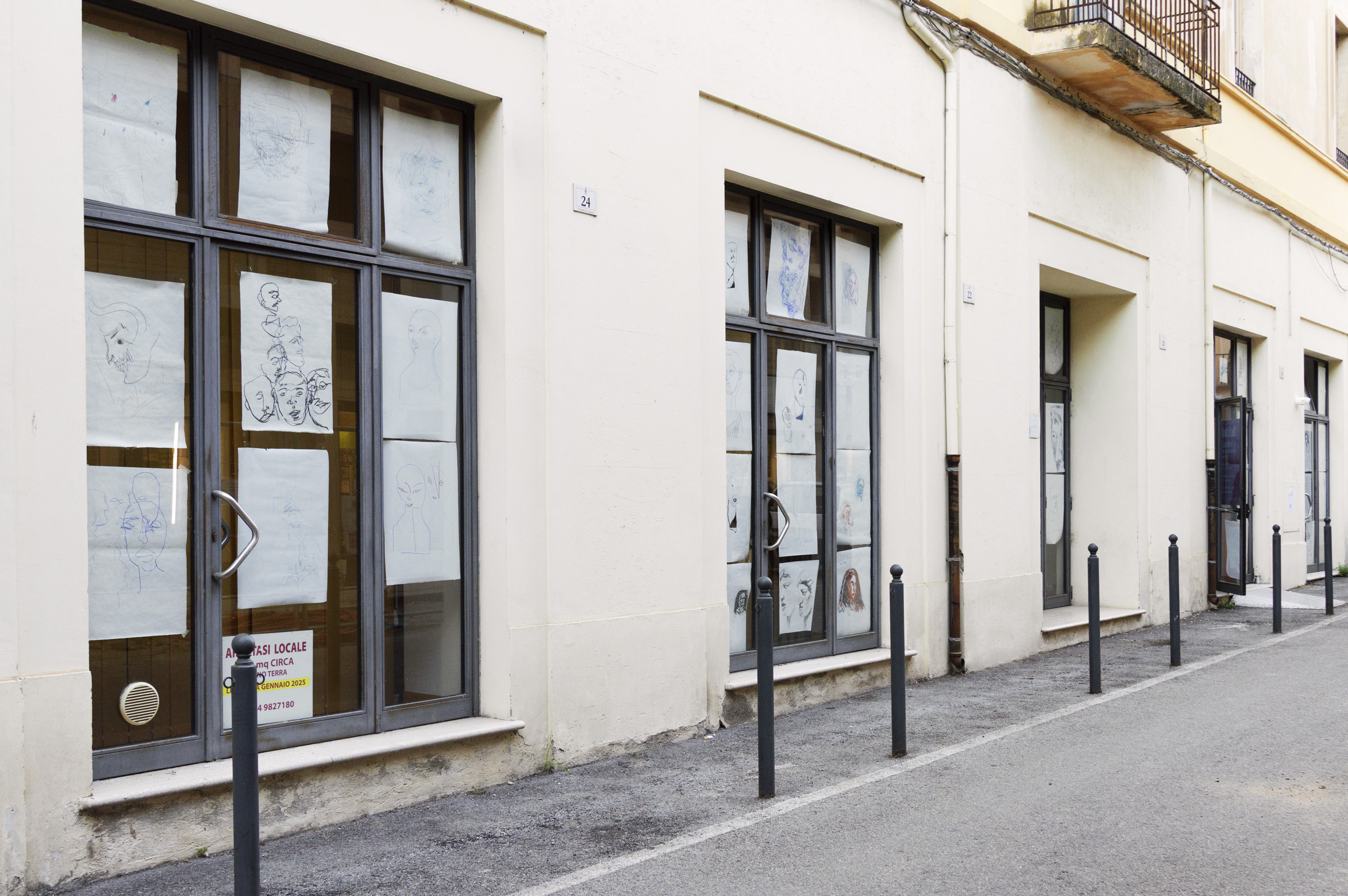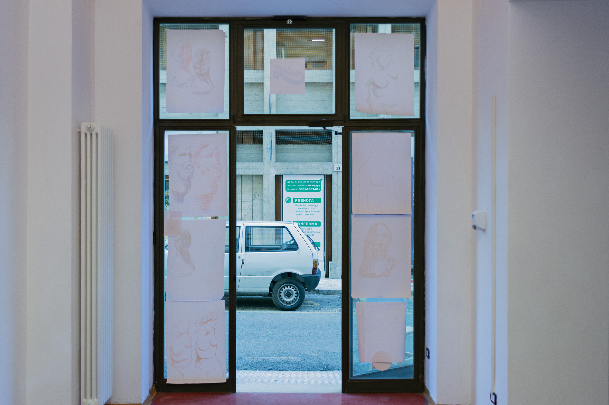 Gli esiti della performance, insieme ai resti di un momento conviviale condiviso con i partecipanti e il pubblico, sono rimasti visibili all’interno del locale e nelle vetrine affacciate sulla strada nei giorni successivi.